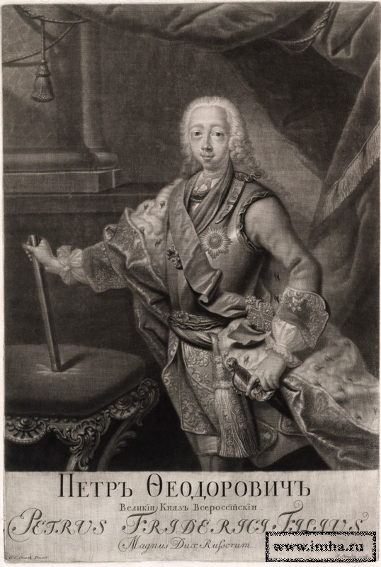 14 л. от роду Петр был вызван из Голштинии в Россию Императрицей Елисаветой Петровной и объявлен Наследником престола.