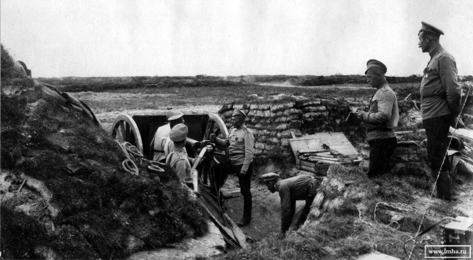 Заряжание орудия 4-й батареи 2-й гренадерской артиллерийской бригады. Юго-Западный фронт. 1917 г. Фотограф неизвестен. РГАКФД. Ал. 1294, сн. 56. 5-я батарея.