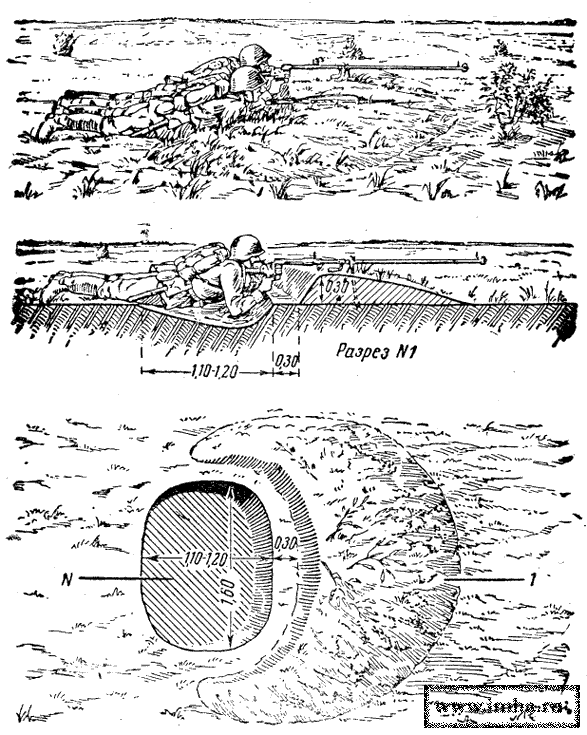 При более продолжительной задержке на месте под огнем противника ячейки углубляются для ведения из них стрельбы с колена.