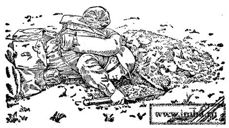 | Стрелковая ячейка для ведения огня с колена. Боец малой лопатой отроет ячейку и замаскирует ее за 25-30 минут.