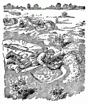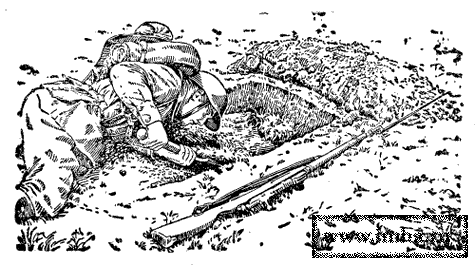 | Стрелковая ячейка для ведения огня лежа. Боец, при помощи малой лопаты отроет такую ячейку и замаскирует ее под огнем за 8-12 минут.