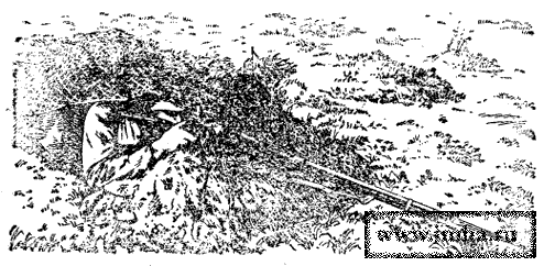 | Ячейка для ведения огня из противотанкового ружья. Два бойца малыми лопатами отроют себе ячейку и замаскируют ее за 10-15 минут.
