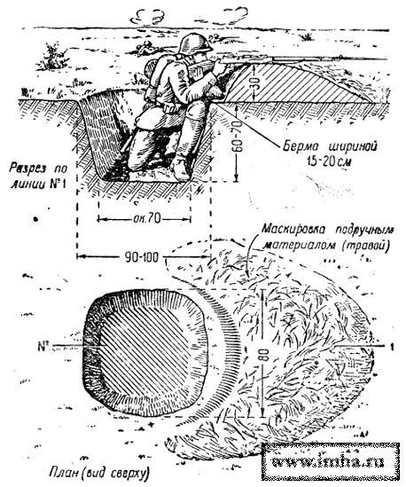 Боец отроет такую ячейку малой лопатой и замаскирует ее за 50-60 минут.