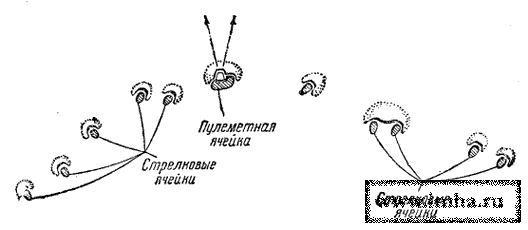 Таким образом, из одиночных и парных ячеек и соединяющего их хода сообщения образуется окоп на стрелковое отделение.