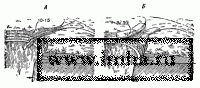 Когда нишу делают одновременно с отрывкой окопа , под бруствером отрывают четырехугольную ящ, которую сверху покрывают жердями или досками (рис. 47, А). Поверх потолка из жердей или досок кладут слой травы или веток и затем насыпают бруствер. Траву, ветки или солому кладут для того, чтобы земля не просыпалась в щели покрытия и не засоряла содержимого ниши. На устройство такой ниши при готовом материале боец затратит 1,5-2 часа. Необходимый материал: двенадцать 6-8-см жердей длиной по 110 см.