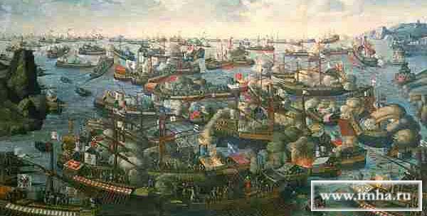7 октября 1571 г. у мыса Скрофа при входе в Патрасский залив Ионического моря, там же, где давным-давно, 2 сентября 31 г. до Р.Х. зять Октавиана Августа, Марк Випсаний Агриппа, возглавлявший флот Запада, нанес поражение флоту Востока, которым предводительствовали Марк Антоний и Клеопатра, по иронии судьбы, снова произошел морской бой между объединенными флотами Запада и Востока, вошедший в историю под названием битвы при Лепанто (Лепанто, современный греческий город Навпактос, находится близ входа в залив Патраикос, в 60 км от мыса Скрофа), имевший огромное значение, с одной стороны, в отражении османской агрессии, а с другой – в развитии военно-морской тактики. Здесь снова испытали судьбу на поле брани Европа и Азия, Запад и Восток, Крест и полумесяц, две веры, два мира, и снова Запад одолел Восток!