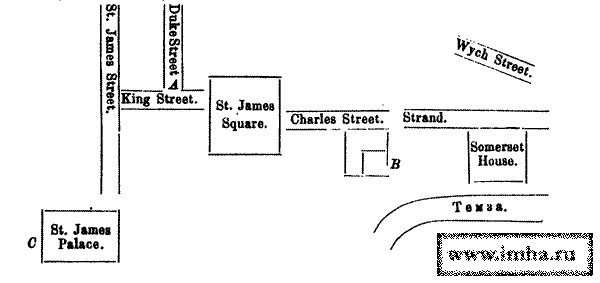 C- дворец королевы Анны, в коем Матвеев имел аудиенцию у королевы (см. выше).