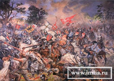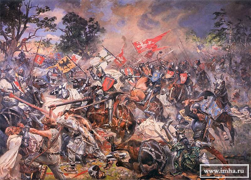 Отгремела знаменитая битва, традиционно именуемая у нас "Грюнвальдской», а в действительности происшедшая при Танненберге ("Еловой горе», в переводе с немецкого), между объединенной армией Королевства Польского и Великого Княжества Литовского, с одной стороны, и армией Тевтонского (Немецкого) духовно-рыцарского Ордена Пресвятой Девы Марии, его вассалов и союзников – с другой. Эта битва, одна из самых крупных в истории европейского Средневековья, началась в девять часов утра 15 июня 1410 года и продолжалась до семи часов вечера. Польско-литовские войска возглавлял король Владислав Ягелло (Ягайла). Кроме поляков и литвинов, под его началом сражались русские, татары, чехи, моравяне и силезцы, бессарабы и валахи, караимы и армяне - причем не только рыцарского происхождения. Боевая единица того времени – "копье» - состояла, чаще всего, из одного тяжеловооруженного рыцаря и его помощников – оруженосца (обычно также рыцарского происхождения), одного или двух лучников (обычно родом из мещан или крестьян), но могла быть и гораздо более многочисленной, о чем будет еще сказано подробнее по ходу нашего повествования. Армия короля Владислава насчитывала около 30 000 воинов, примерно в два с половиной раза превосходя силы противника.