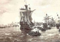 "Ликеделеры" наводили ужас на моря отнюдь не под синими или голубыми флагами (приписываемыми "морским братьям" Балтики автором любимой книги нашего детства "Кольцо Великого магистра", заставившим одного из них - корноухого капитана пиратов прусского происхождения - при всем честном народе на пиру в Мариенбургском замке Верховного магистра тевтонов поклясться привести весь флот Тевтонского ордена к ножкам датской королевы Маргариты, скорее всего, по идеологическим соображениям), а под красным знаменем, означавшим их твердое намерение не давать своим пленникам никакой пощады и немедленно проливать их кровь.