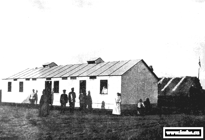 | Складной цинковый барак Георгиевской общины Красного креста в Русско-Японскую войну 1904-1905 гг. | Складной барак в Русско-Японскую войну 1904-1905 гг. | Чертёж барака и "Наставления ..." 1902 года. |