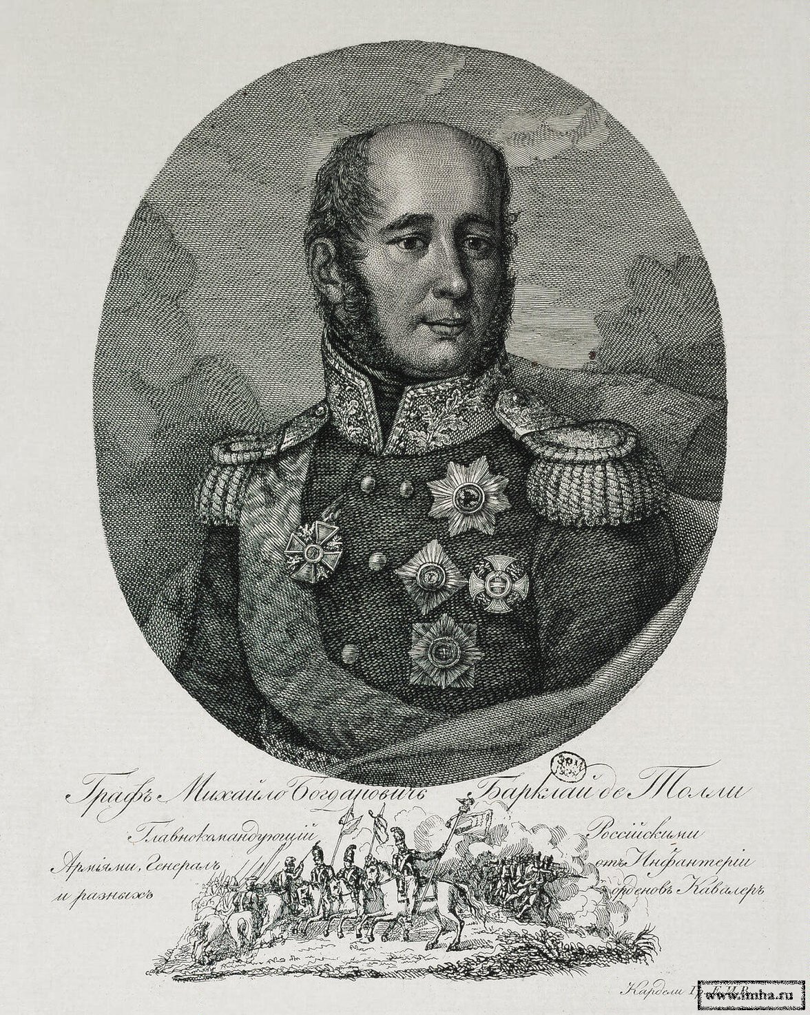 Михаил-Андреас (Михаил Богданович, при рождении Михаэль Андреас Барклай де Толли) (Барклай; Barclay de Tolli, Michael Andreas Barclay de Tolly) (13.12.1757, имение Памушис близ Шавли, Речь Посполита — 14.5.1818, мыза Штилитцен, близ Инстербурга, Восточная Пруссия), граф (1813), князь с 1815 г., (1814). генерал-фельдмаршал, военный министр.