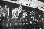 Между тем, уже с начала 1942 г. начался прием французских добровольцев и в Ваффен СС (поначалу - в индивидуальном порядке). До тех пор, пока в СС отсутствовала национальная французская воинская часть, французским волонтерам приходилось служить в немецких частях Ваффен СС (так, в составе 3-й дивизии СС "Мертвая голова" и 5-й дивизии СС "Викинг" на Восточном фронте сражалось более 300 французских добровольцев). В конце июля 1943 г. правительство Французского государства (именуемого противниками Гитлера "правительством (режимом) Виши" - по названию города - резиденции этого правительства и его главы - маршала Филиппа Петэна) официально разрешило французам вступать в Ваффен СС. С этой целью на территории Французского государства было открыто 7 пунктов записи добровольцев. В целях информационной поддержки призывной компании власти Французского государства 22 июля 1943 г. учредили "Комитет друзей Ваффен СС" (франц.: Comite des Amis de la Waffen SS). Во главе общества стоял Поль Марион (министр информации в "правительстве Виши"). Таким образом, вербовка французских добровольцев в Ваффен СС осуществлялось при официальной поддержке французского правительства, в то время как формирование "Легиона французских добровольцев против большевизма" являлось частной инициативой ряда французских политических партий. Ниже приведены фотографий французских политических деятелей, наиболее активно вербовавших добровольцев в "Трехцветный легион" и Ваффен СС - Жака Дорио (в прошлом - одного из лидеров Французской Коммунистической партии), Марселя Деа и Жозефа Дарнана (см. слева направо)..![]()