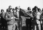 После выздоровления Фавзи эль Кокджи немцы предложили ему сотрудничество с "особым штабом Фельми", расположенном в греческом городе Сунион и занятым формированием "Германо-арабского учебного подразделения", преобразованного позднее в Легион "Свободная Аравия" (Legion Freies Arabien). Нарукавная нашивка,, носившаяся на правом рукаве мундира выше локтевого сгиба чинами этого Легиона (совершенно аналогичная государственному флагу Ирака, в знак солидарности с иракским режимом Рашида Али аль-Гайлани - и почти почти аналогичная флагу Иордании - см. илл.), изображена на приведенной выше цветной иллюстрации к данной миниатюре.