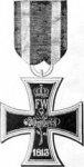 Судьба прусского Железного креста (приобретшего со временем всегерманский статус) после 1815 года была такова. Награждение им прекратилось с окончанием Освободительной войны против Наполеона и возобновлялось всякий раз с началом каждой новой войны, в которой участвовала Пруссия. Таким образом, Железный крест был как бы "восстановлен» для награждения участников Франко-прусской (Германо-французской) войны 1870-71 годов и Первой мировой войны 1914-18 годов (причем не одних только пруссаков, а в последнем случае – не одних только немцев, но и их союзников). На реверсе Железного креста сохранялся (на верхнем луче) первоначальный вензель учредителя награды "ФВ» (FW), то есть "Фридрих-Вильгельм» (Friedrich-Wilhelm), три дубовые веточки (в центре креста) и дата учреждения награды "1813» (на нижнем луче); на аверсе – дата начала новой компании и, тем самым, "восстановления» награды (на нижнем луче креста) – например, "1870» или "1914», вензель правящего на момент выдачи знака прусского короля "В» (W), то есть "Вильгельм» (Wilhelm, соответственно, I или II), и прусская королевская корона. До 1918 года Железный крест, несмотря на объединение Германии и провозглашении ее Империей, во главе с королем Пруссии в качестве Императора, по-прежнему считался прусской королевской (а не общегерманской) наградой и потому по-прежнему носился на черно-белой ленте цветов прусского флага, соответствовавших унаследованным от цветов древних тевтонских рыцарей цветам прусской королевской династии Гогенцоллернов, чей фамильный герб представлял собой испанский щит, четвертованный в серебро и чернь. Знак Железного креста украшал также белый, с черным одноглавым коронованным орлом, военный флаг Пруссии, а позднее – прусские и германские полковые знамена и штандарты, военный (и одновременно – военно-морской) флаг Северо-Германского Союза (ставший в 1871 году военным и военно-морским флагом объединенной под скипетром Гогенцоллернов Германской Империи), штандарты короля и кронпринца Пруссии, а также германских Императора и Кронпринца (причем при этом речь шла об одних и тех же людях).