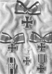 3) Шейный Рыцарский крест Железного креста (Ritterkreuz des Eisernen Kreuzes, 7 358 награждений) – хотя введение подобной "рыцарской», или "кавалерской», степени являлось, по сути дела, нарушением Статута Железного креста, носившего изначально отнюдь не "аристократический», а напротив - "эгалитарный» характер;