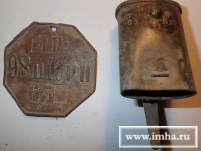 | Увольнительный жетон нижнего чина 1 роты 98 пехотного Юрьевского полка (слева) |