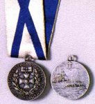 В славные анналы Российского Императорского флота навеки вошла одна совершенно особенная награда - круглая серебряная медаль на белой ленте с косым синим Андреевским крестом ? копии военно-морского Андреевского флага Российской державы. Аверс медали украшает изображение Георгиевского креста на орденской ленточке, обрамленного лавровым венком, в свою очередь, окруженным идущей по краю медали надписью "ЗА БОЙ "ВАРЯГА И КОРЕЙЦА 27 ЯНВ. 19О4 - ЧЕМУЛЬПО". На реверсе медали - изображения обоих российских военных кораблей, бесстрашно вступивших в бой с японской эскадрой, с изображением Святого Животворящего креста Господня в верхней части медали.