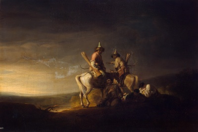 | Башкиры (Башкиры, конвоирующие приговоренных). Аллан, Уильям. 1782-1850. Великобритания. 1814 г. Холст. Масло. 43x63 см |