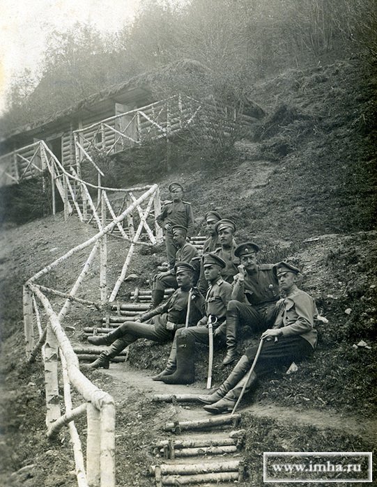 | Группа офицеров 103-го пехотного Петрозаводского полка. Карпаты, Румыния, 12 мая 1917 г. |