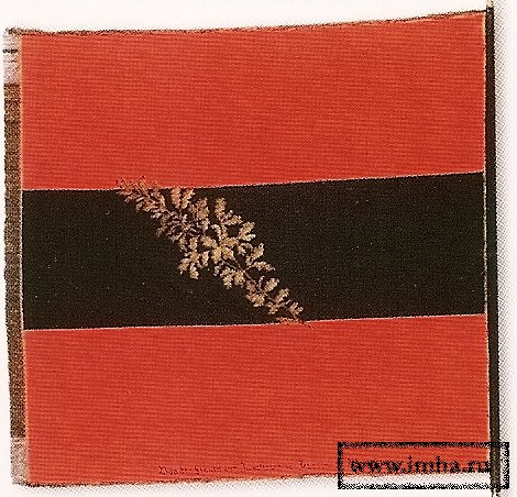 Надо сказать, что трехцветный "черно-красно-золотой германский флаг» образца 1817 года (приведенной нами на иллюстрации к данному краткому очерку) по своему внешнему виду значительно отличался от позднейшего трехполосного "дрейфарба». "Вартбургский флаг» был сшит из двух темно-красных полос и одной черной между ними. В центре флага была вышита золотая дубовая ветвь.