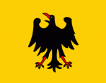 "Римско-германские» Императоры - как правило, они сначала короновались в восьмиугольной церкви Октагон города Ахена германской королевской короной, а затем, взойдя предварительно на трон Карла Великого, шли походом в Италию, где римские папы более или менее добровольно возлагали на них корону римских Императоров! - пользовались штандартами в виде позолоченных одноглавых римских орлов и различными знаменами (например, хоругвью с изображением Архангела Михаила, считавшегося покровителем всех воинов вообще, и христианского рыцарства - в частности). В летописях встречались упоминания и изображения стяга римско-германских Императоров с изображением черного одноглавого орла на золотом поле.![]()