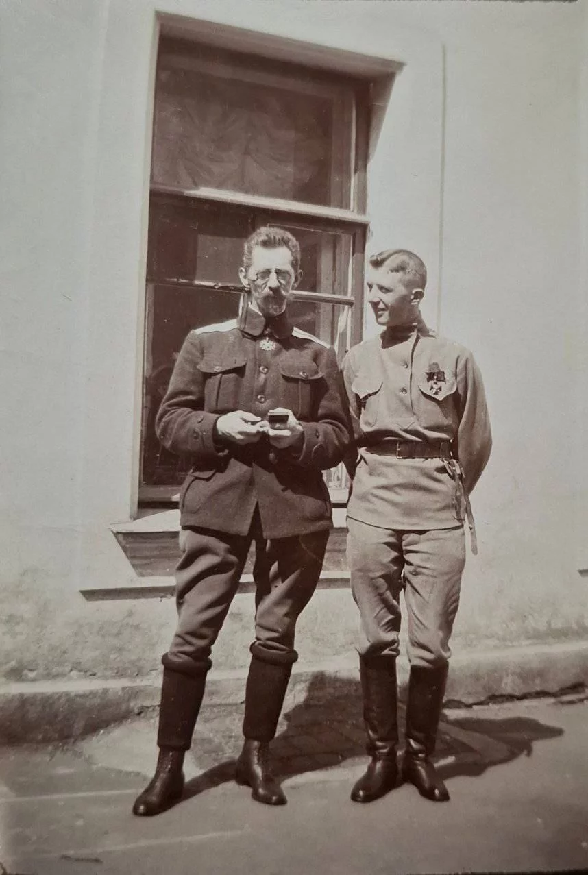 Штабс-капитан 169-го пехотного Ново-Трокского полка Виктор Францевич Мейштович (справа) с орденом Св. Владимира 4-й ст. 1916-1917 гг. Фото из семейного архива.
