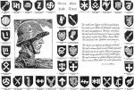 47. 40-я добровольческая мотопехотная дивизия СС "Фельдгеррнгалле" (не путать с одноимённой дивизией германского вермахта). Данная дивизия была названа в честь здания "Галереи (Зала) полководцев" (Фельдгеррнгалле), перед которым 9 ноября 1923 года рейхсвером и полицией лидера баварских сепаратистов Густава Риттера фон Кара была расстреляна колонна участников путча Гитлера-Людендорфа против правительства Веймарской республики. Сведений о тактическом знаке дивизии не сохранилось.