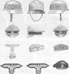 На парадах и в боевой обстановке чины "Шуцштаффеля» (СС) носили стальные шлемы (каски). Первоначально эсэсовцы пользовались стальными шлемами образца 1916 1918 гг. В конце 30-х гг. в "части СС особого (специального) назначения» ("СС-Ферфюгунгструппен», именуемые также "частями усиления СС» или, по цвету их униформы, "зелеными СС») стали поступать армейские стальные шлемы образца 1935 года. Позже у "зеленых эсэсовцев» появились каски образца 1942 года.
