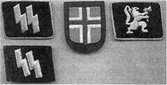 При этом чины "Норвежского Легиона», сражавшиеся в составе дивизии СС "Викинг» (в число норвежских добровольцев СС, входил, между прочим, Арилд Гамсун, сын патриарха норвежской литературы Кнута Гамсуна) носили на петлицах изображение норвежского льва с "секирой Святого Олава» в лапах (а чины норвежской "Полицейской роты СС» - того же норвежского льва с секирой, но вдобавок еще и в короне, как на гербе Норвегии). Датские добровольцы носили на петлицах маленький датский флажок с 2 косицами, сдвоенные руны Сиг или трискелион (трикветр или трифос).