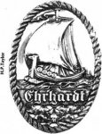 Одно из крупнейших белых добровольческих соединений Германии периода Ноябрьской революции и последующих событий, весьма напоминавших гражданскую войну - чины 2-й Вильгельмсгафенской Военно-морской бригады капитана III ранга Германа Эргардта (сокращенно именуемой просто "бригадой Эргардта") носили на левом плече опознавательный знак овальной формы, представлявший собой обрамленное каймой в виде корабельного каната изображение плывущего по морю на всех парусах "драккара" викингов с вымпелом на мачте, с надписью готическими литерами "Вильгельмсгафен" (позднее - "Эргардт") на ленте под ладьей и пучком дубовых листьев под лентой. ![]()