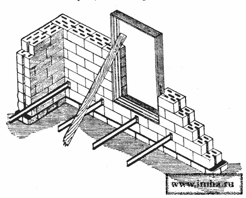 Один из способов устройства таких стен представлен на том же черт.