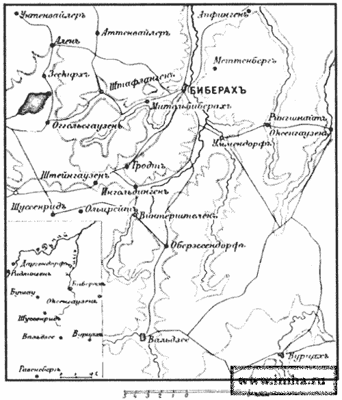 Не лучше обстояло дело с отрядом, отступавшим от Гродта под натиском Сен-Сира: при попытке пройти южнее Бибераха, отряд этог был отброшен от пути отступление, окружен Сен-Сиром и взят в плен.