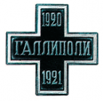 После эвакуации русских беженцев с "Голого поля" (как они со злой иронией окрестили негостеприимный полуостров) в Королевстве Сербов, хорватов и словенцев (Державе С.Х.С. – будущей Югославии) белые эмигранты изготавливали "Галлиполийский крест" уже не из свинца и не из железа, а из особого, заменявшего железо сплава темно-свинцового оттенка, а еще позднее – из бронзы, покрытой черной эмалью. Русские эмигранты во Франции выбивали "Галлиполийский крест" из серебра, покрытого черной эмалью с узкой белой каймой. С целью сохранить узы боевого братства белых воинов, закаленного лишениями пребывания в беженских лагкрях, было создано "Общество галлиполийцев". Эмблемой общества стал "Галлиполийский крест". Его носили на мундире, а в петлице штатского костюма - миниатюрный крестик-"фрачник" той же формы, на безымянном пальце левой руки – "Галлиполийское кольцо". Для женщин были изготовлены броши с "Галлиполийским крестом".![]()