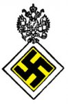 Между тем. "ларчик открывается достаточно просто. Знак, о котором идет речь, действительно был учрежден не в 1882 г. в России, а гораздо позже в эмиграции. Но он не имеет никакого отношения к Холмскому "ортодоксальному" братству, является религиозным знаком Всероссийской Фашистской Партии (В.Ф.П.) /14/, действовавшей в 20-е-40-е гг. ХХ в. среди русских белоэмигрантов, главным образом, на территории Маньчжурии ("Желтороссии").