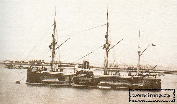 Бронирование его состояло из полного пояса железной брони в 9 дм., каземата в 8 дм., траверсов в 7 ? дм. и 2-дм. палубы; артиллерийское вооружение составляли IV 9-дм., заряжающихся с казны 18-тон. орудий Армстронга, II таких же орудия 7-дм. калибра и VII скорострельных пушек, минное – 2 носовых аппарата и 1 кормовой. Скорость хода считалась 13 узла.