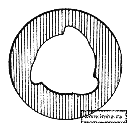 Эта цель достигалась приданием нарезам (в количестве трех) в сечении очертания по спирали (фиг. 2). Центрование получалось вполне удовлетворительное, но прорыв газов оставался не устраненным, почему его орудия не были нигде введены.