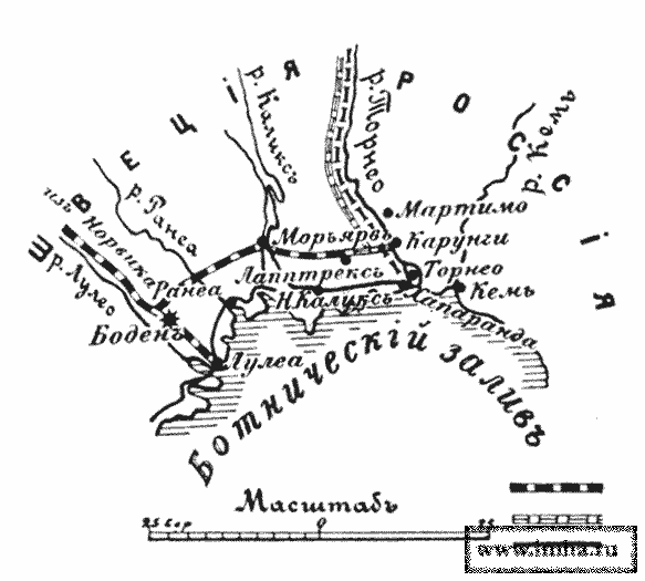 В 90-х годах XIX ст., с целью задержать возможное наступление русских на сильной оборонит. линии р. Лулео, выбран был Боден, как узел всех путей в удобнейшем пункте переправы через эту реку. Окончание всех укреплений намечено было в 1909 г., но, под влиянием русско-японской войны, решено крепость значительно расширить, превратив ее в укрепленный лагерь с 30-тыс. гарнизоном.