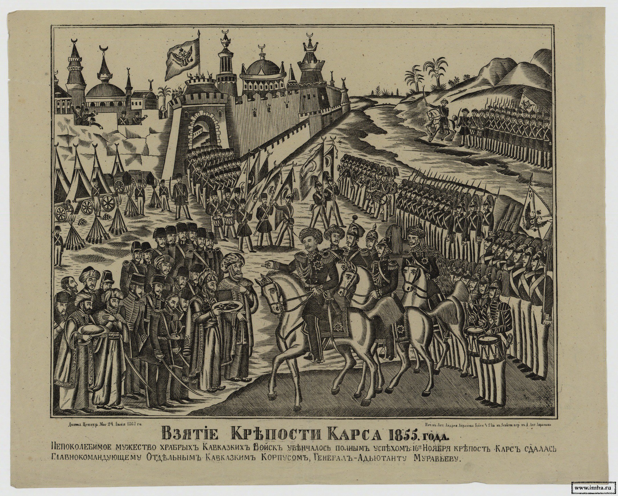 Взятие Крепости Карса 1855 года. Москва: Литография Андр. Абрамова: 1867. - 29 х 37,5; 35,5 х 44 см. |