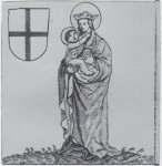 Если верить хронистам Тевтонского (Немецкого) Ордена Пресвятой Девы Марии (Ордена рыцарей Черного Креста Девы Марии) и польским летописцам, на Главной орденской Хоругви были изображены Пресвятая Богородица с Богомладенцем Иисусом на руках, а справа от Богородицы - герб Ордена - прямой черный крест на белом (серебряном) поле. Вероятно, данное изображение украшало аверс главной орденской хоругви тевтонов, в то время как на ее реверсе был изображен святой мученик Маврикий (так, во всяком случае, обстояло дело с главной хоругвью ливонского филиала Тевтонского Ордена - прямого наследника прибалтийского Ордена воинства Христова, или меченосцев, известного также как Орден Меча). Наличие у рыцарей-тевтонов (именовавшихся также "марианцами" или "марианами") этой Главной хоругви с образом Пресвятой Богородицы, Небесной Покровительницы и Заступницы Ордена (изображенной в заглавии данной миниатюры), не подлежит никакому сомнению, будучи засвидетельствовано многочисленными хрониками и другими документами, однако о ее наличии в рядах тевтонского войска Верховного магистра (Гохмейстера) брата Ульриха фон Юнгингена в день битвы с польско-литовским войском под Танненбергом 15 июля 1410 года, не сообщает ни один хронист. Возможно, кому-то из тевтонских рыцарей удалось спасти это Главное знамя своего Ордена, вследствие чего оно не попало в руки победителей и, соответственно, в известный список хоругвей и знамен Тевтонского Ордена (лат.: "Бандериа Прутенорум", т.е. "Прусские знамена"), составленный польским хронистом Яном