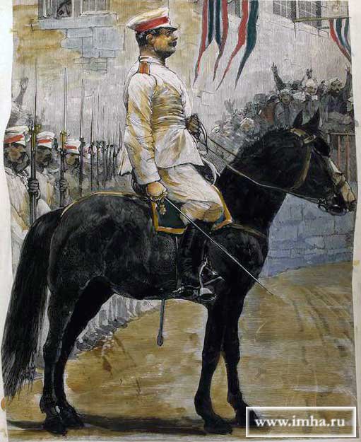 ВОенное министерство состоит из: штаба армии, канцелярии, главного интендантства, инспекций—кавалерии, артиллерии и военно-инженерных частей — военно-судебная и военно-санитарная.