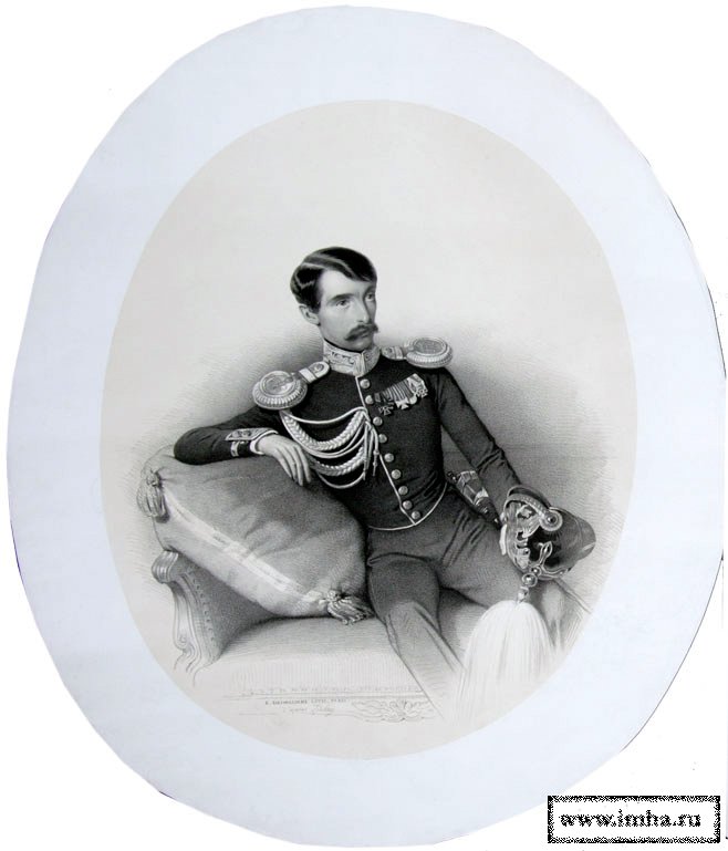 "Русский офицер полка Николая I". С работы Зичи. Литография. Париж, вторая половина ХIХ в. 49х41 (овал). |