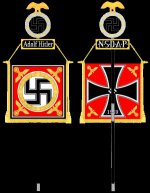 Летом 1940 года эсэсовскому полку личной охраны Адольфа Гитлера ("Лейбштандарту СС Адольфа Гитлера») был (в ознаменование его боевых заслуг в ходе Западной кампании против Голландии, Бельгии, Франции и Англии) в возвращенном в состав Германской державы городе Меце вручен штандарт, отличавшийся, как своей формой, так и своим внешним видом, от прежнего (и от всех остальных штандартов полков СС). Аверс его квадратного (а не прямоугольного, как у всех других штандартов СС и СА) полотнища представлял собой копию аверса (и реверса) штандарта фюрера и рейхсканцлера Третьего рейха Адольфа Гитлера. В центре красного, обрамленного черно-белой каймой полотнища помещался черный, обведенный черным контуром прямостоящий крюковидный (гамматический) крест-коловрат (значительно большего размера, чем изображенный на обычных штандартах пеших полков СС), вписанный в белый круг, обрамленный круглым венком из золотых дубовых листьев, с четырьмя золотыми орлами на вписанных в золотые дубовые венки коловратах по углам полотнища, окаймленного пышной золотой бахромой.