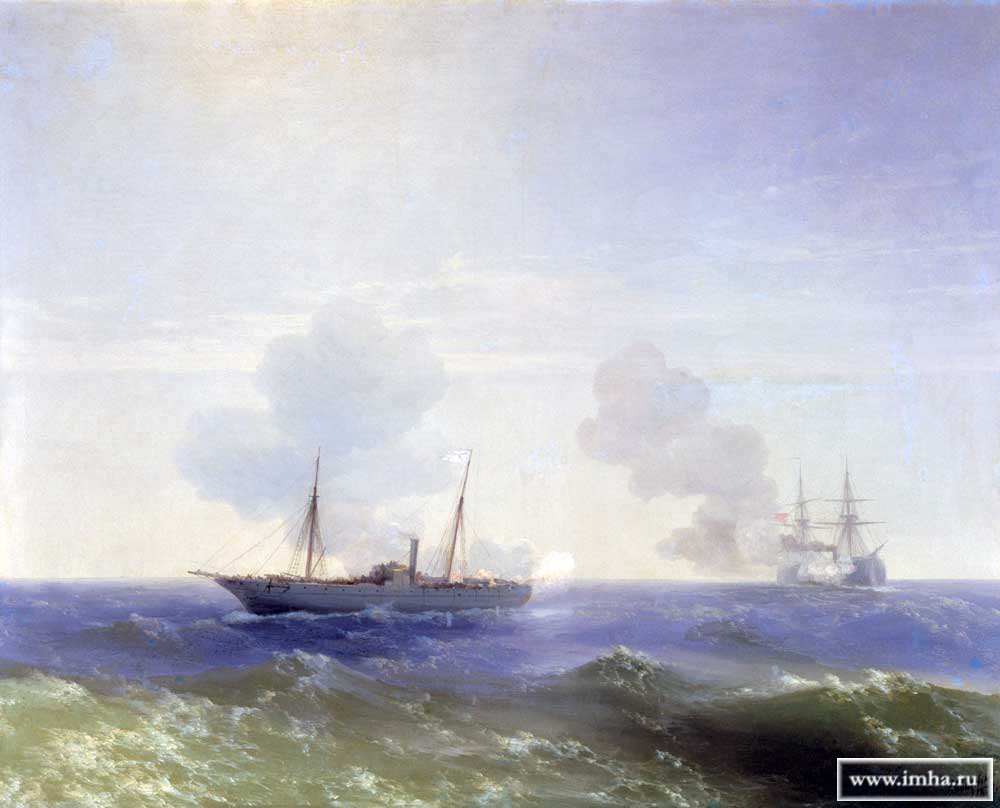 Неоднократно противники сближались на расстояние 2-3 кабельтовых, что позволяло Весте открыть ружейный огонь. Воодушевляемый своим командиром, экипаж Весты, несмотря на большие потери, повреждения судна и артиллерии, сражался с редким мужеством, заставив современников сравнивать этот бой слабого железного парохода с подвигом брига Меркурий. После нескольких пробоин, повреждения руля и вывода двух мортир, Веста, в свою очередь, удалось нанести значительный урон противнику. Удачный снаряд, пущенный лейтенантом Рождественским, вывел из строя одно из носовых башенных орудий противника и произвел сильный пожар. Имея, по видимому, и другие повреждения, неприятель замедлил ход, а затем, отказавшись от продолжения боя, повернул к Кюстенджи.