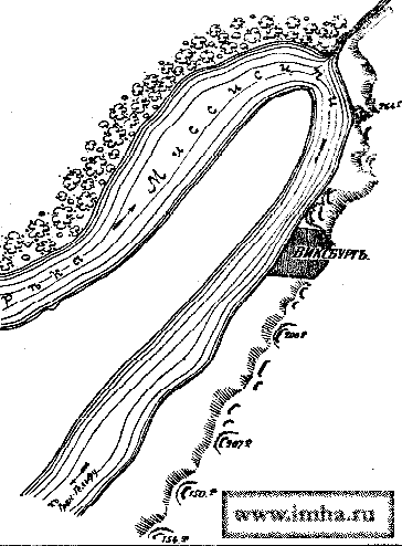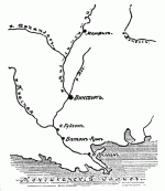 Главные силы, 50 т. человек под начальством Гранта, двинулись по правому берегу р. Миссисипи, обходя Виксбург с запада с целью переправиться через эту реку ниже Виксбурга в 30 в. и атаковать его с юга. Шерман с 30 т. д. был демонстрировать с севера, наступая с полуострова Юнгс-Поинт, куда он был выдвинут в виде заслона, по направлению к северной группе укреплений Виксбургого района у ГейнсБлеф, что и было им исполнено вполне удачно при содействии флотилии Дэвиса. Это дало возможность Гранту перейти на левой берегу Миссисипи и после ряда боев, с 29 апреля 1863 г. до 18 мая, обложение Виксбурга был завершено. Промежутком времени о 22 июля 1862 г. до 29 апреля 1863 г., т.е. более чем 9-и месяцев относительно спокойного времени южане вновь воспользовались для превращения первоначально возведенной линии береговых укреплений и сухопутной окопов в обширный временный укреплённый лагерь (см. табл.). Внешняя линия обороны Вигсбурга был протяжением около 11 вер. с сухопутной стороны и в 6 вер. со стороны р. Миссисипи.
