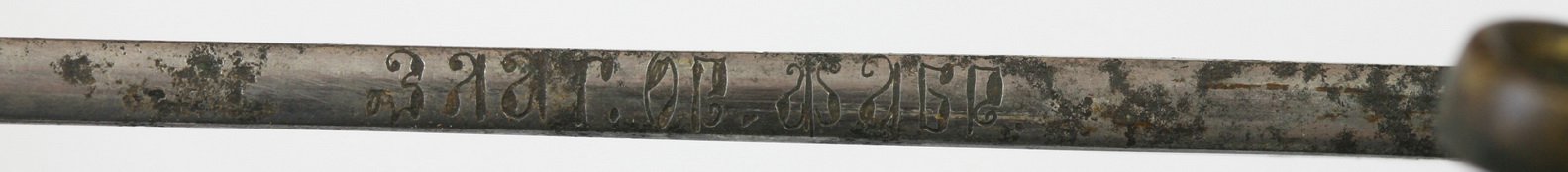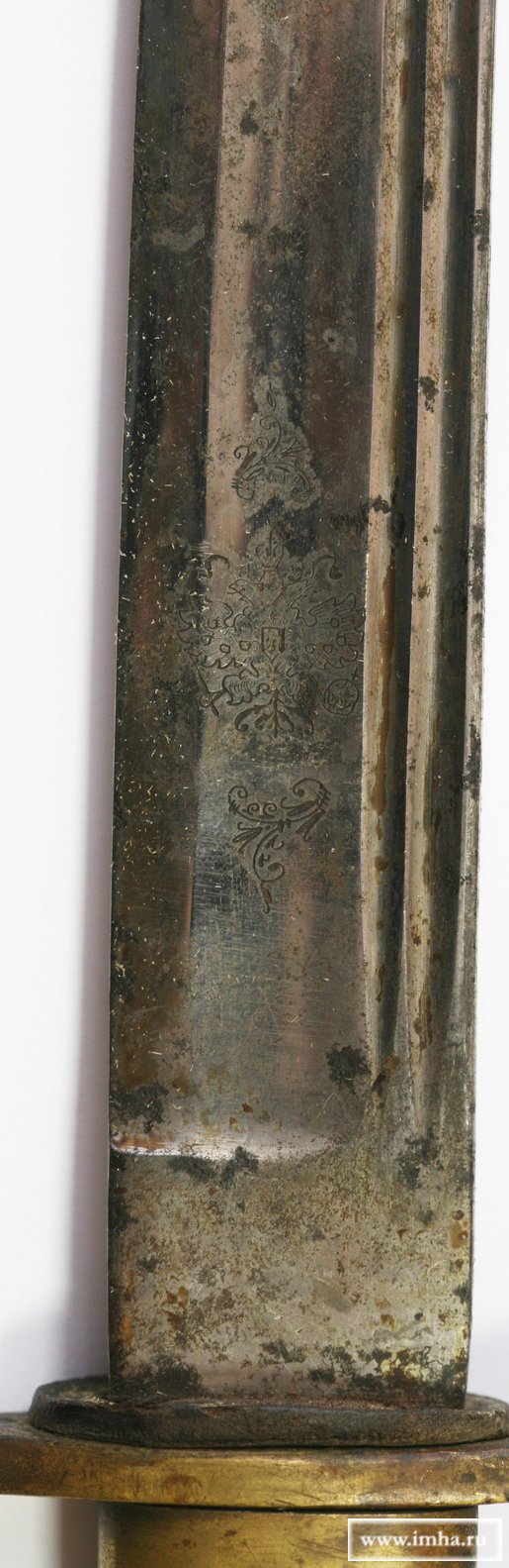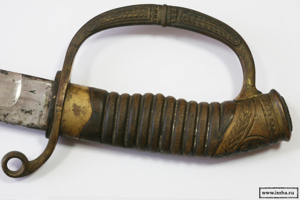 Желобки на рукояти стали поперечными и более глубокими. На верхней втулке появился растительный орнамент и вензель императора, в царствование которого владелец оружия получил первый офицерский чин. Головка рукояти делалась в виде фигурной розетки.