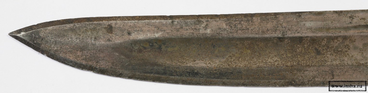 Клинок стальной, незначительной кривизны, с одним широким долом или двумя узкими доликами у обуха и широким долом. Боевой конец двулезвийный. Были распространены также произвольные клинки.