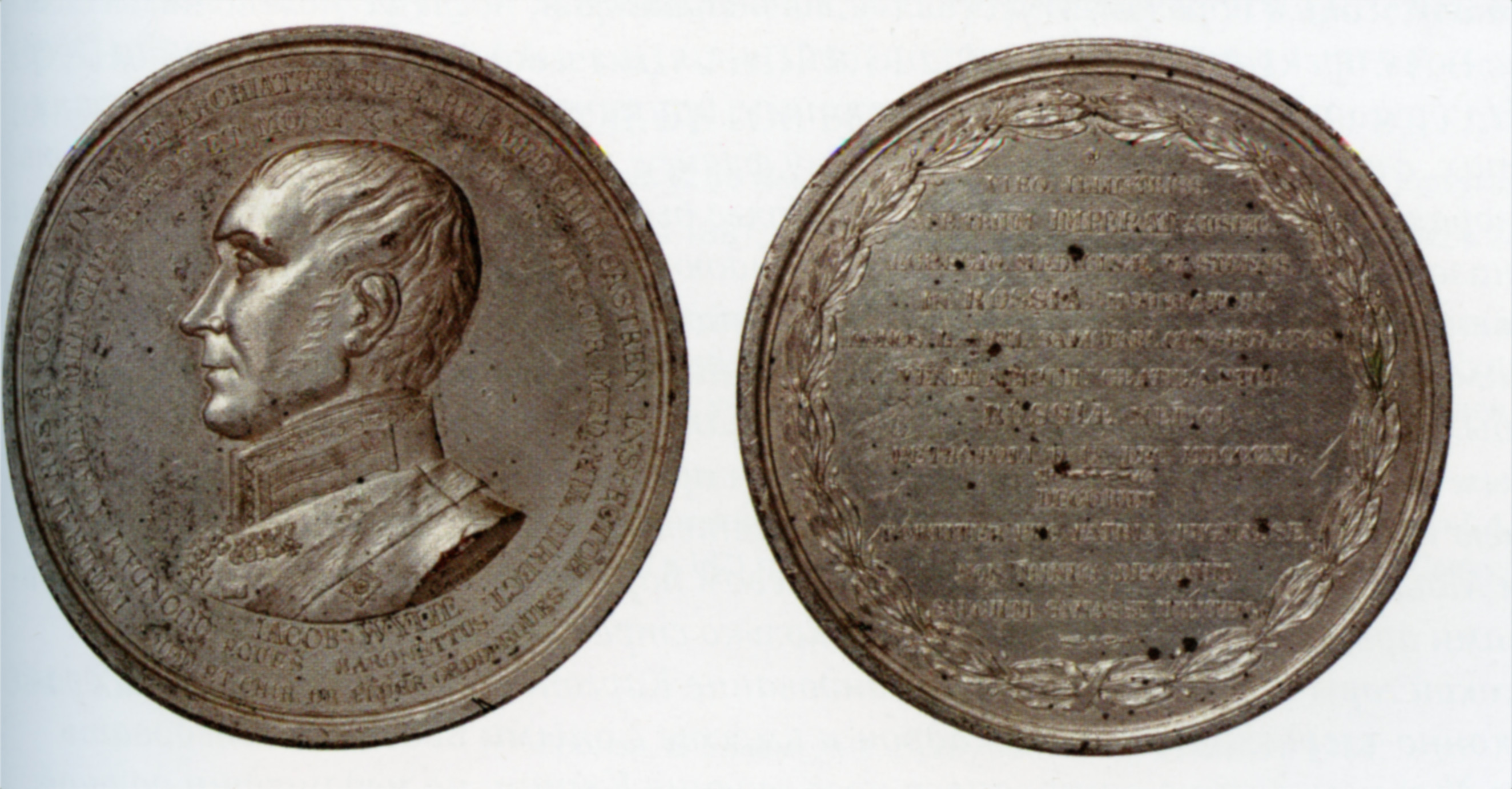 ПАМЯТНАЯ МЕДАЛЬ В ЧЕСТЬ 50-ЛЕТИЯ СЛУЖБЫ ПРИДВОРНОГО ВРАЧА БАРОНЕТА ЯКОВА ВАСИЛЬЕВИЧА ВИЛЛИЕ, 1840
