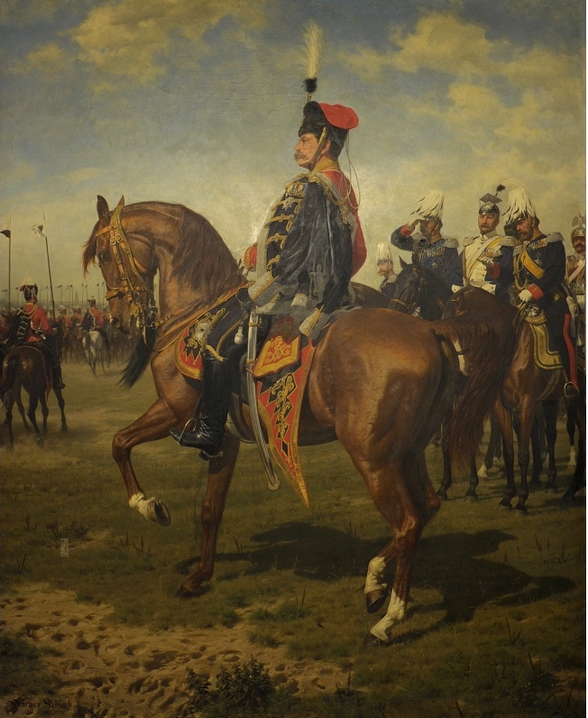 В 1881 г. ВИЛЬГЕЛЬМ вступил в брак с дочерью герцога Фридриха Шлезвиг-Голштинского ВикториейАвгустой и 16 сентября 1885 г. был назначен командиром гвардейского гусарского полка (в Потсдаме). Заявив себя "солдатом от природы, как все бранденбуржцы», ВИЛЬГЕЛЬМ с чрезвычайной ревностью отдался службе: входил во все мелочи солдатской и офицерской жизни, лично выбирал подарки солдатам на елку и вообще тогда уже проявил ту активность и то стремление лично входить во все, которая создали ему такую популярность, как императору. Тогда же он проявил и стремление бороться с роскошью в офицерской среде и, оставшись верен ему до конца царствования, сразу же проявил большую настойчивость. Запрещение им офицерам своего полка посещать клубы с карточной игрой вызвало большое неудовольствие и дошло до императора Вильгельма I, который предложил своему внуку отменить его. ВИЛЬГЕЛЬМ твердо заявил ему, что своего распоряжения он не отменит, а если оно будет отменено помимо него, то оставит командование полком.