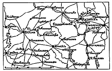 После вторжения Наполеона в Россию и занятия им Вильны (16 июня), наша 1-я армия отошла к Дриссе, а 2-я отступала через Вилейку, Минск к Борисову. Это эксцентрическое отступление разъединило армии к 26 июня (Дрисса – Несвиж) до 260 вер. В виду этого, Наполеон, действуя войсками Даву против кн. Багратиона, решил обойти 1-ю армию и отрезать ее от Москвы, для чего направился к Полоцку и Витебску.