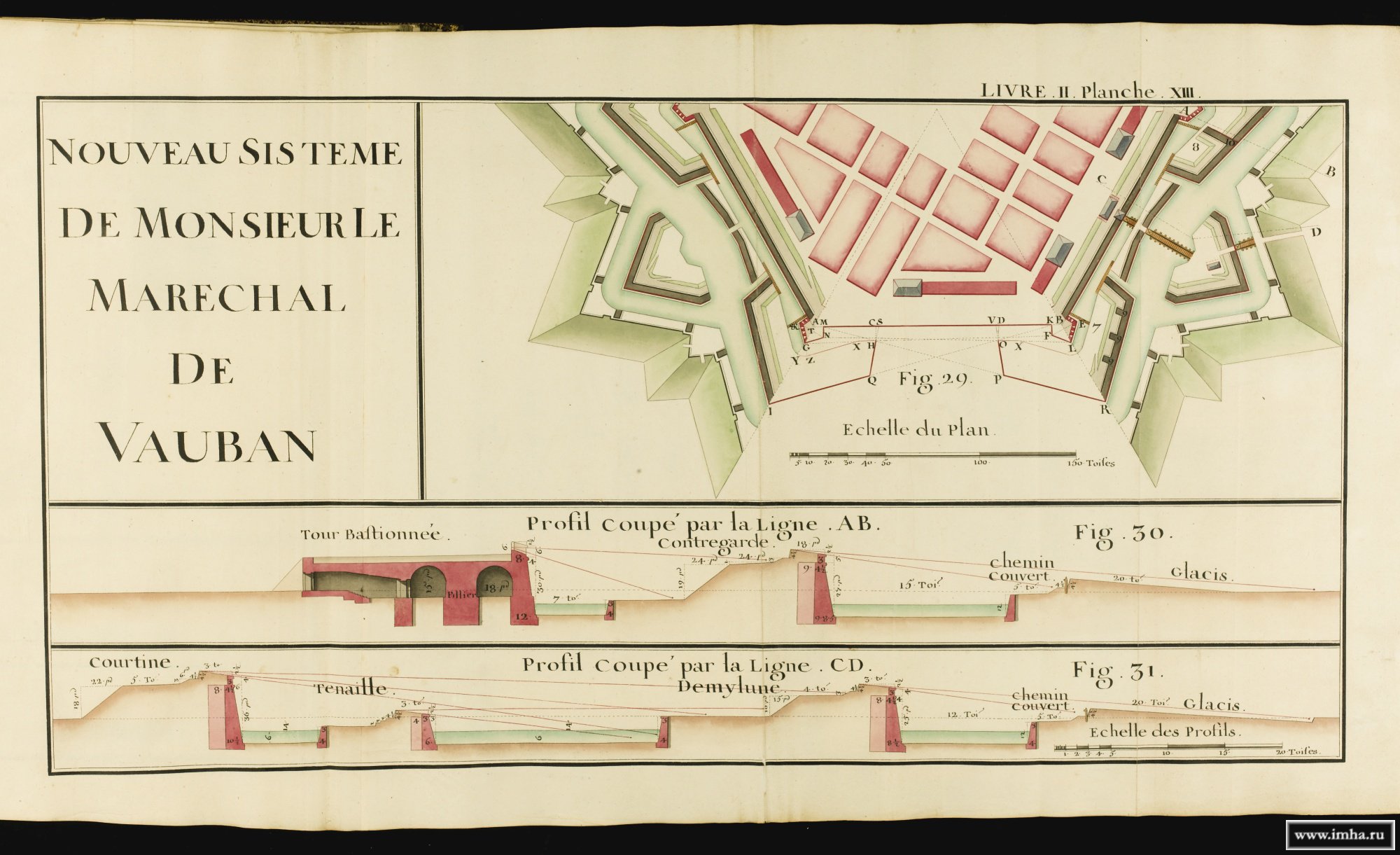По проектам крепостей ВОБАНОМ известен предложенными им тремя системами, подробности которых изложены в статье История фортификации.